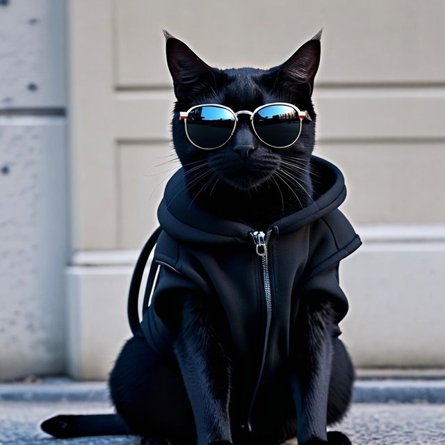 Pixel Art Style Images of a Cool and Stylish Black Cat