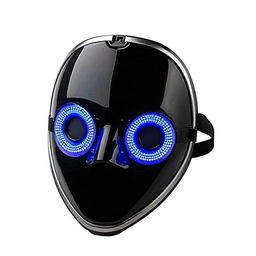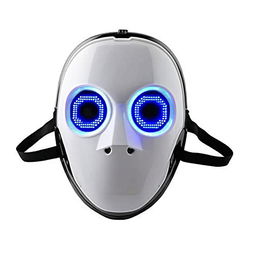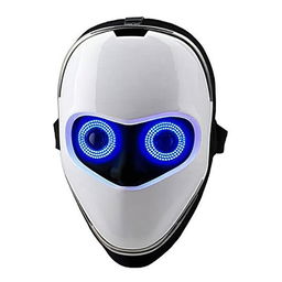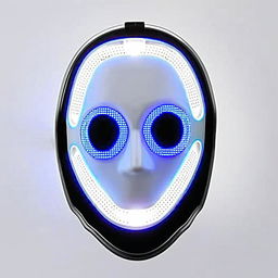 "Make an LED mask with hollow eyes and a straight mouth, just an LED emotion mask, white background"