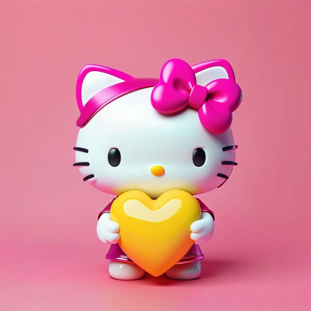 "cute, hello kitty, 3d, colorful, intensely vibrant, pink, chibi style, holding a big pink 3d heart, uhd, 8 k, neon colors, bright, "hello kitty", sanrio, pink attire, stylized octane render, high resolution, a cute 3D icon of cute, hello kitty, 3d, colorful, intensely vibrant, pink, chibi style, holding a big yellow..."