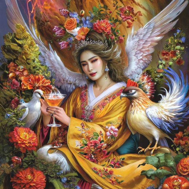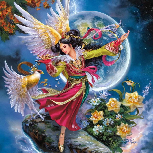 "Add vibrant colors of blues purples and pinks to this picture"