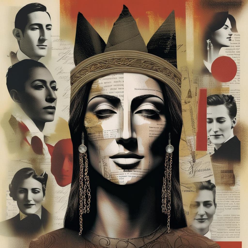 "Overlap parts of other faces including female face over the images to make one face made of several different facets. Make the Typography more prominent the adding text elements with varying fonts and styles should be of varying sizes to enhance the collage."