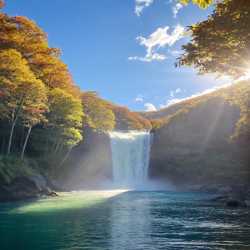 Ethereal Waterfall: A Cascade of Autumn Colors