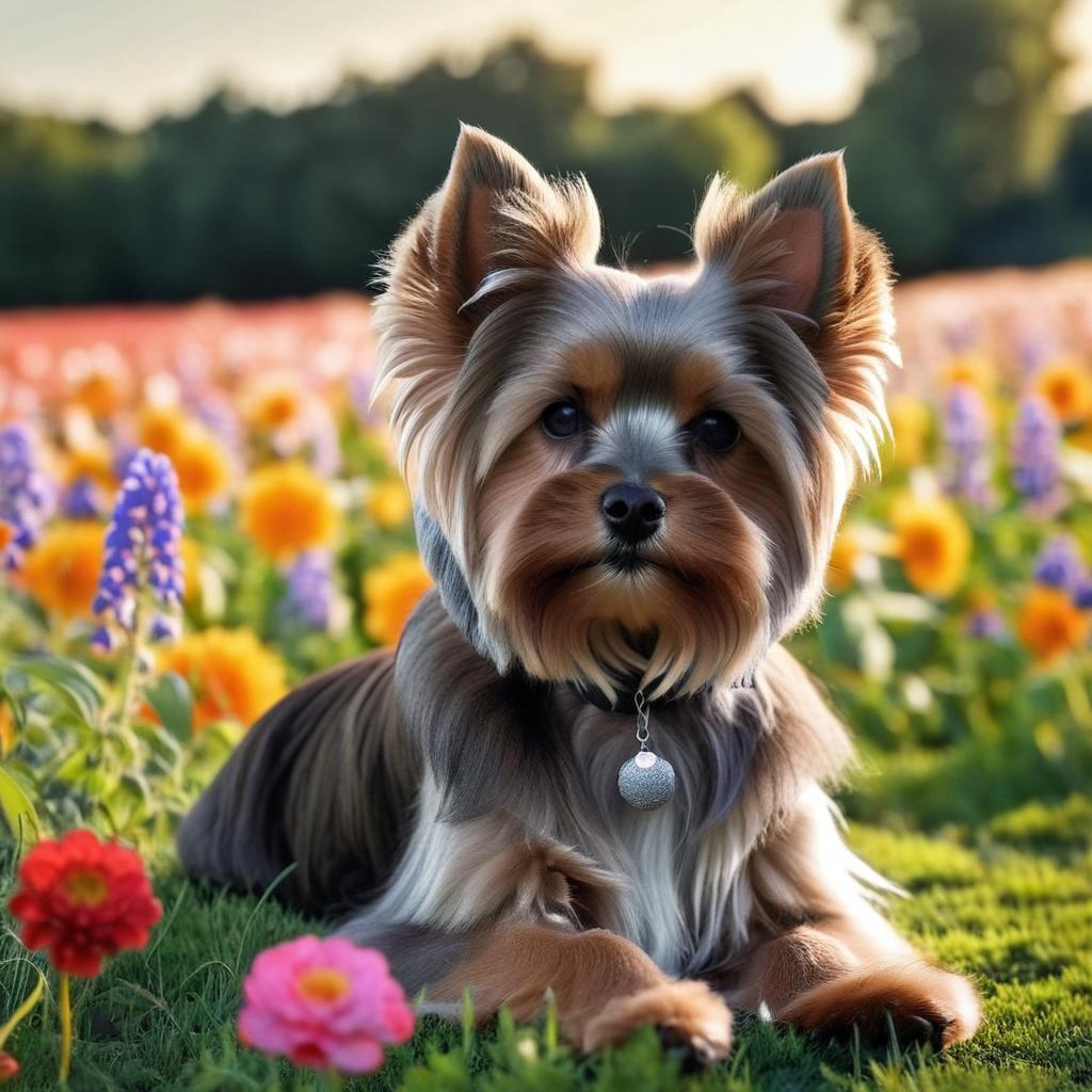 Fluffy Fun: A Playful Pup Among Wildflowers