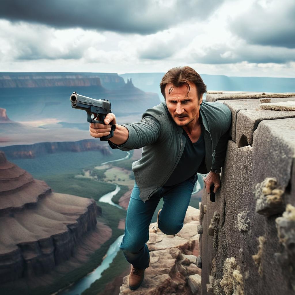 Mission Impossible Action Hero Tom Cruise Hanging from a Cliff