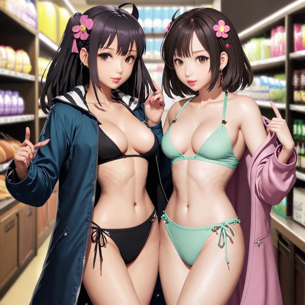 Bold Elegance: Anime Beauty in a Vibrant Bikini