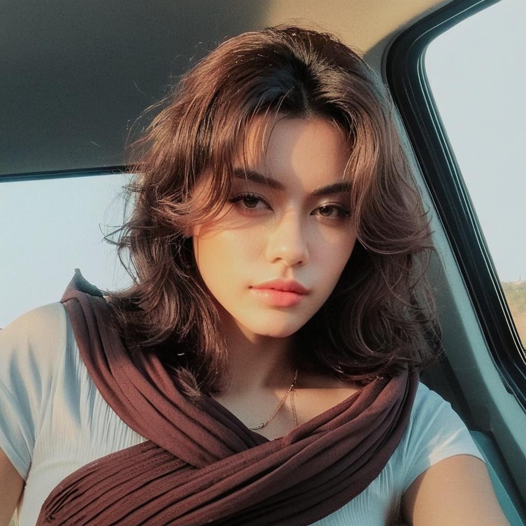 Fabulous Selfie Vibes: Brunette Beauty in the Car