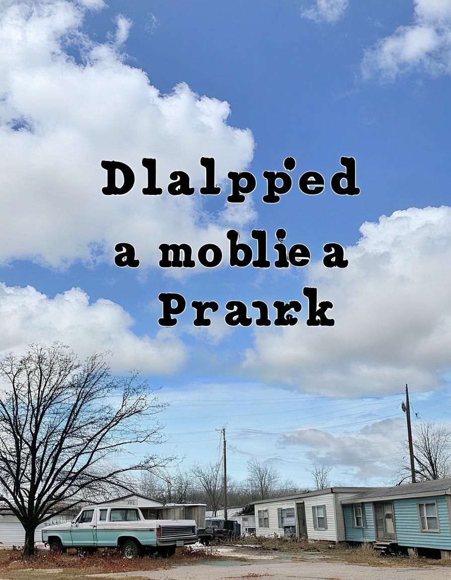 "dilapidated mobile home park and a dilapidated 80s Ford Truck in the background under a cloudy autumn day"