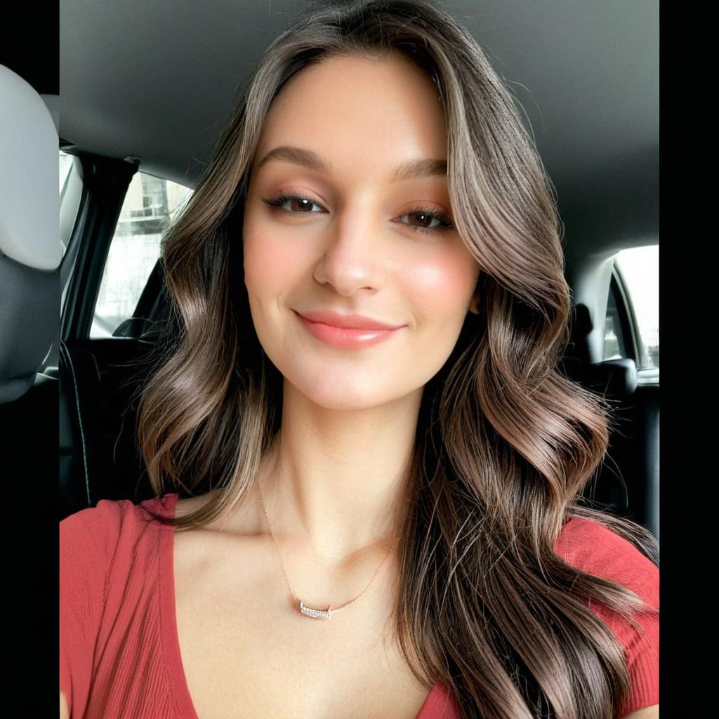 Fabulous Selfie Vibes: Brunette Beauty in the Car