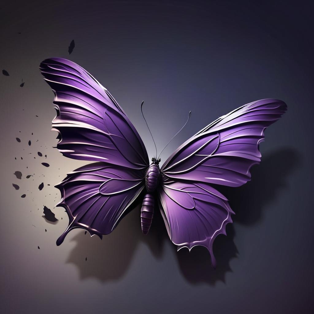 "falling butterfly, broken, ripped wings, tilted, dark abstract chaotic background"