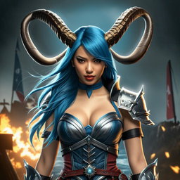 Fearless Female Knight in Silver and Blue Armor