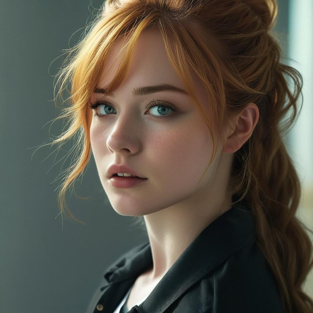 Vibrant Redhead Portrait: Fiery Locks and Sparkling Green Eyes