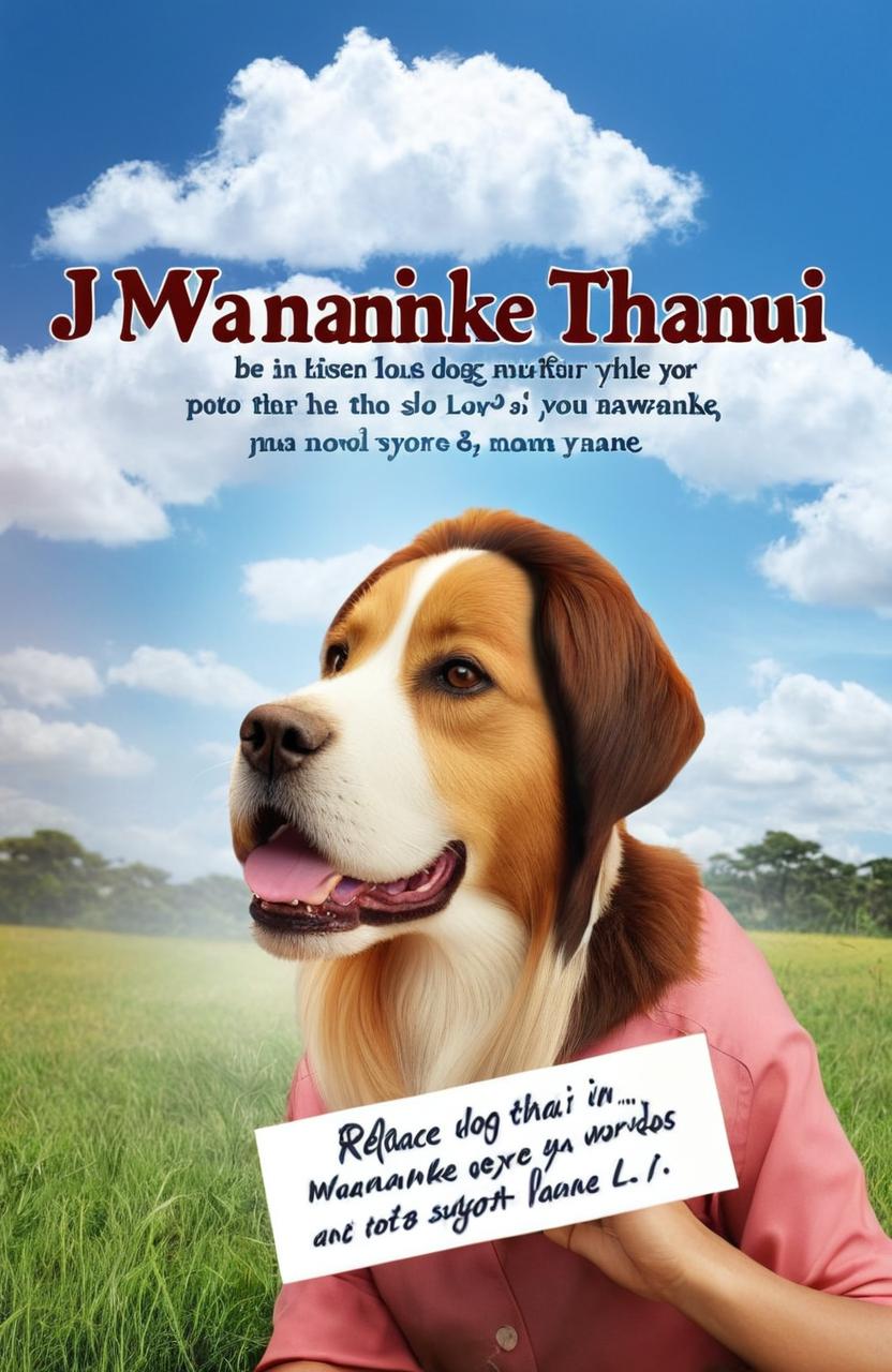 "Replace the dog in photo 1 above with a photo of lady in photo 2, then the top words in photo 1 should be replaced with the title "MWANAMKE WA THAMANI NDANI YANGU" na bottom words replace with the name "J. K. Romward""
