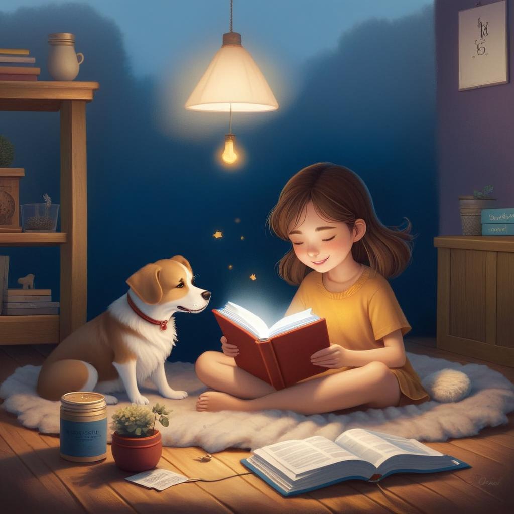A Heartwarming Evening Moment: Girl, Dogs, Tranquility