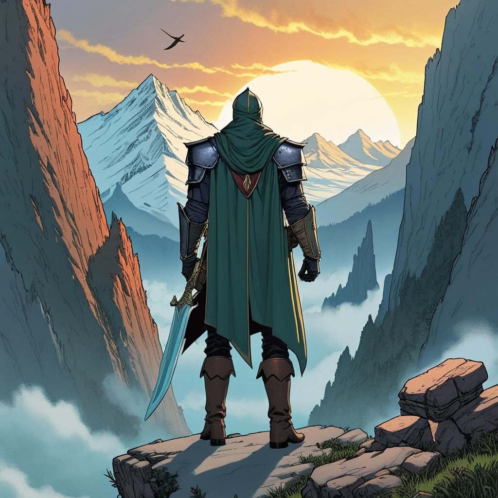 Stand Tall: Heroic Figure in Vibrant Fantasy