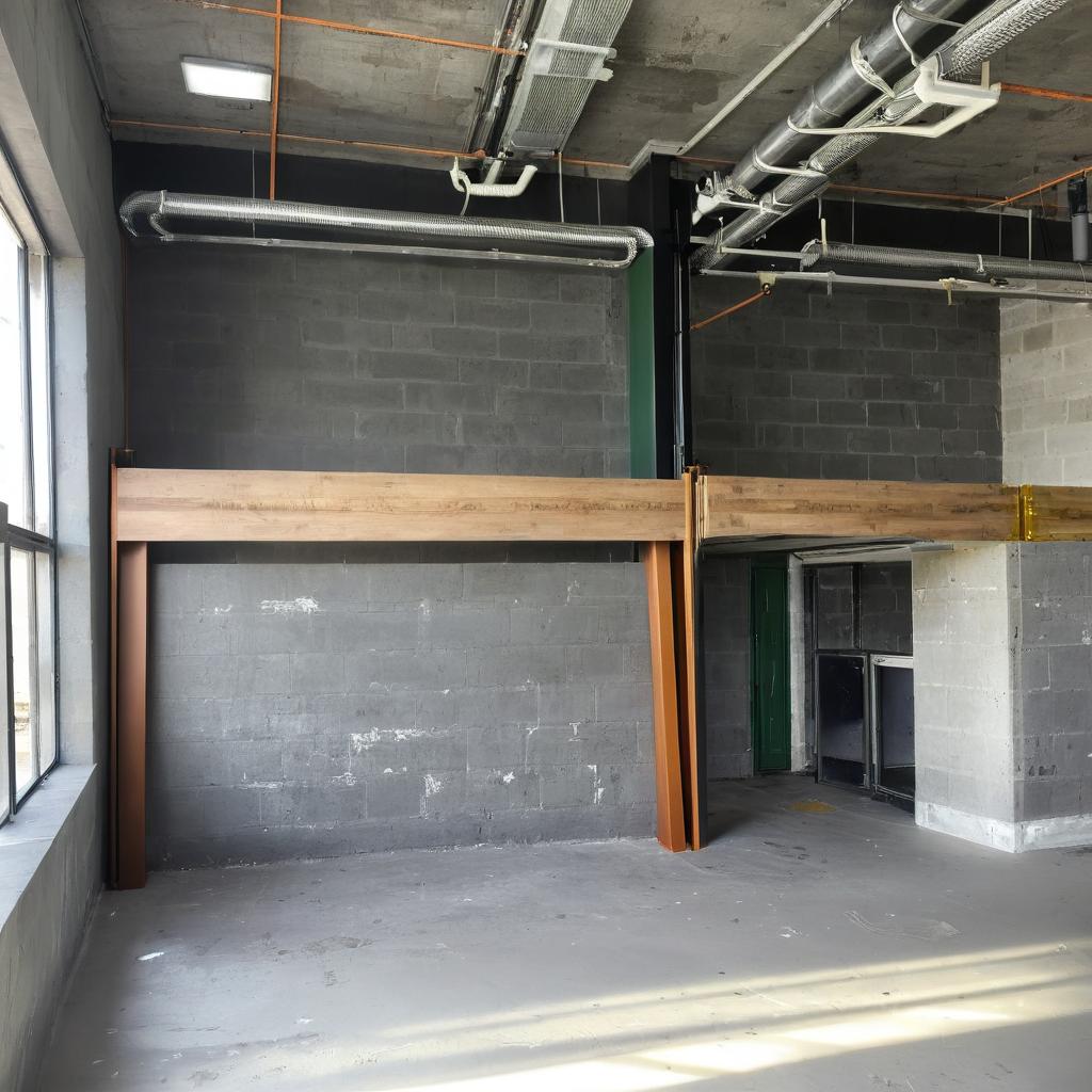 "Cafeteria aconchegante, mesas e cadeiras de madeira, decoração em cinza, preto e verde escuro, estilo industrial, paredes alterando lisas e de tijolos a vista, luminárias com luzes amarelas, balcão de atendimento com estufa de salgados, pessoas sentadas nas cadeiras, banheiro a direita, pé direito alto, uma parede c..."