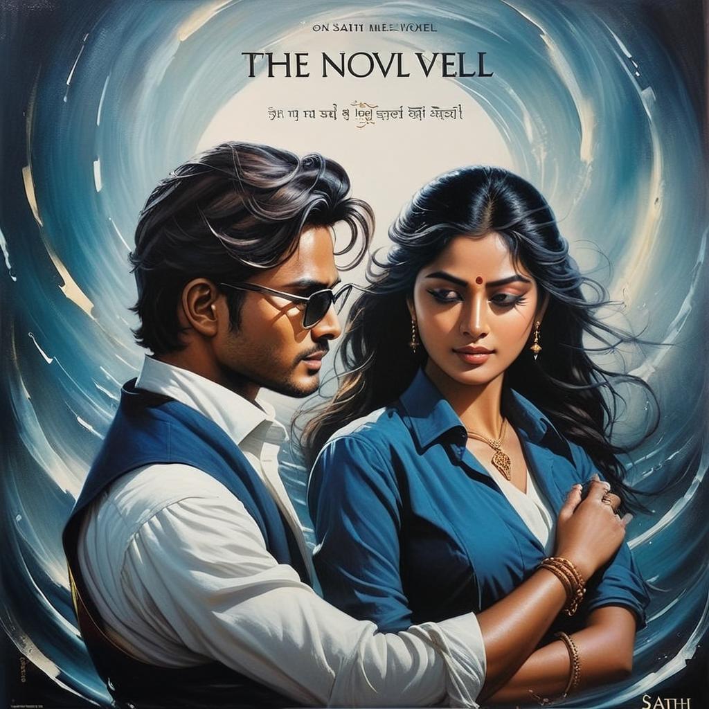 "main title text "The Novel" (elegant font, at center of picture) above swirling subtitle with "Saathi Maya" (floating with big fonts and beautiful design below the title The Novel),"