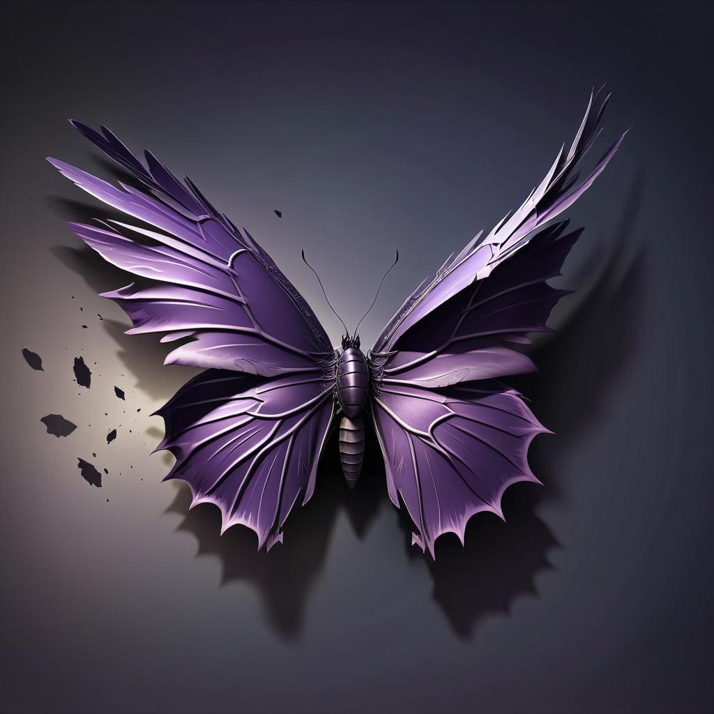 "broken, ripped wings, tilted, dark chaotic, windy background"