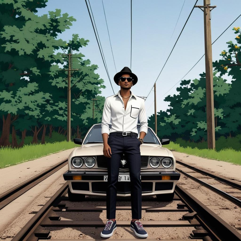 Adventure Awaits: Stylish Man on Railroad Tracks
