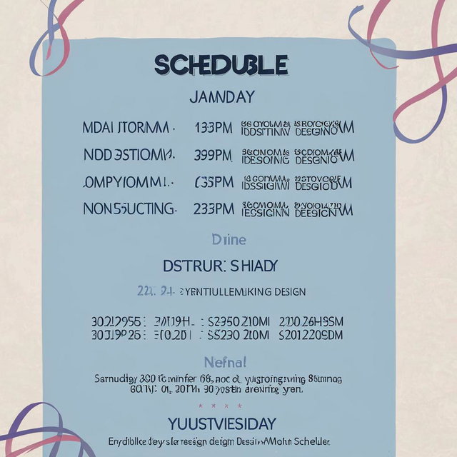 "make an picture schedule for my wallpaper in this WEDNESDAY ETHICS: 8:30AM - 10:00AM UNDERSTANDING THE SELF: 10:30AM - 12:00PM PHILIPPINE POPULAR CULTURE: 1:00PM - 2:30 PM LIVING IN THE IT ERA: 2:30PM - 4:00 PM SCIENCE, TECHNOLOGY, AND SOCIETY: 4:30PM - 6:00PM THURSDAY COMPUTER-AIDED DRAFTING: 12:00PM - 3:00PM P..."