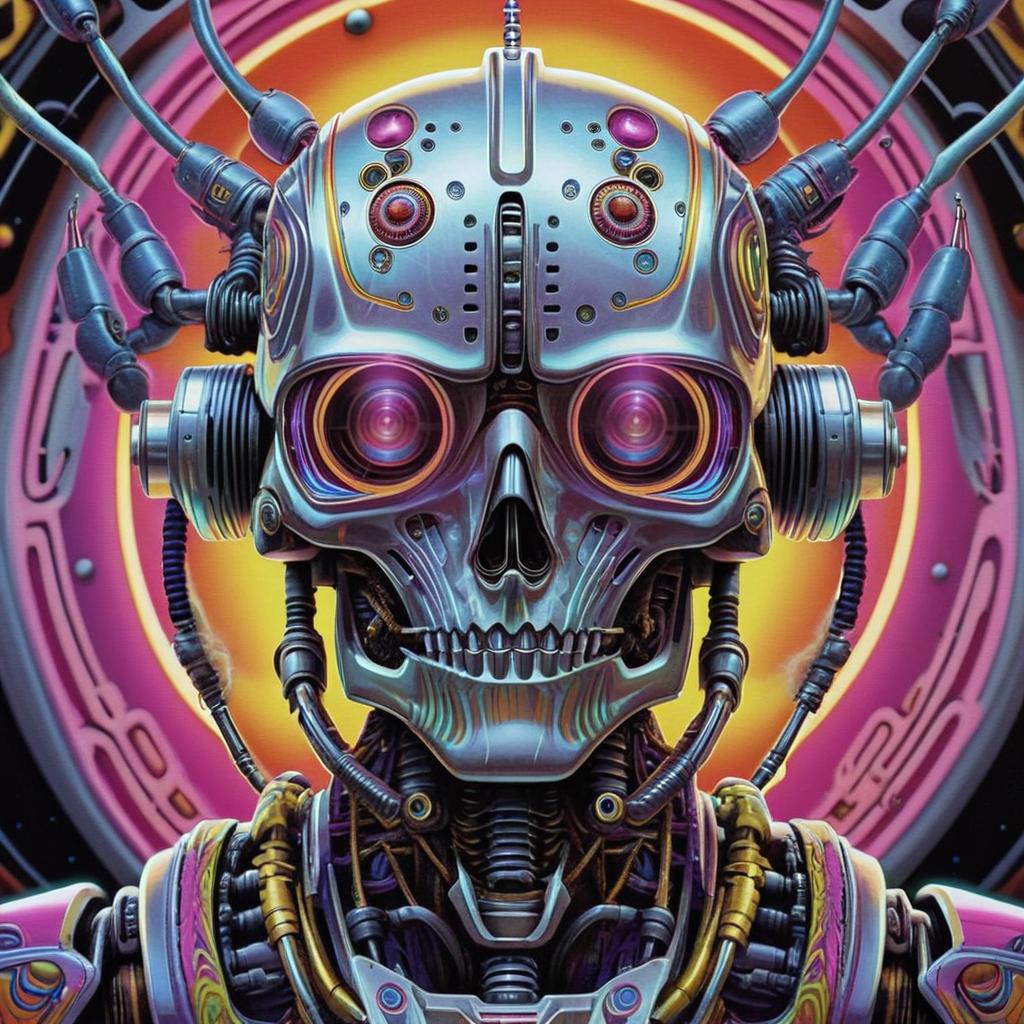 Neon Dreams: Psychedelic Robot Head