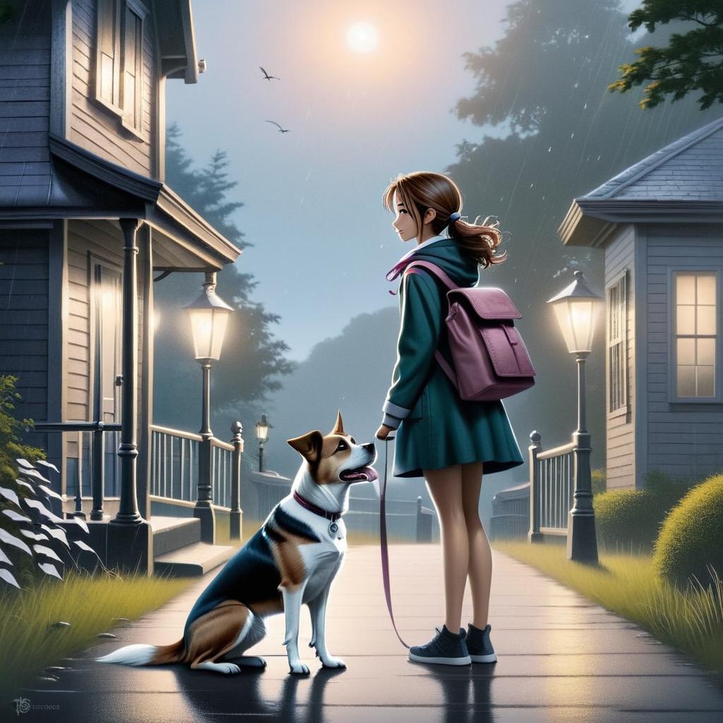 Rainy Afternoon Stroll | Girl & Dog