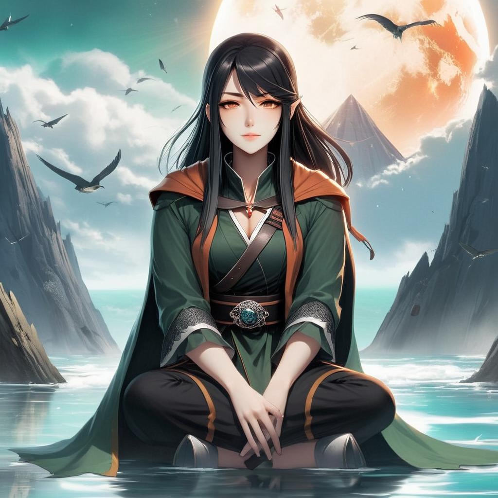 Escape to Serenity: Anime-Style Girl on a Tranquil Beach