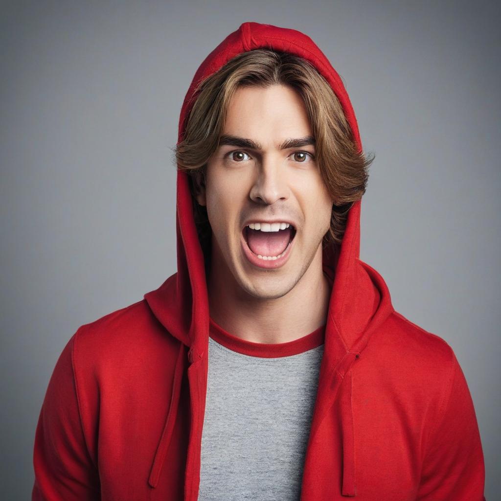 Selfie Moment: Bearded Man in a Red T-Shirt