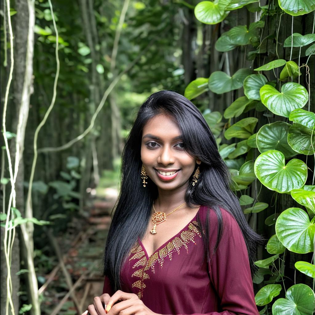 Embrace Elegance: Woman in Red Sari in Lush Forest