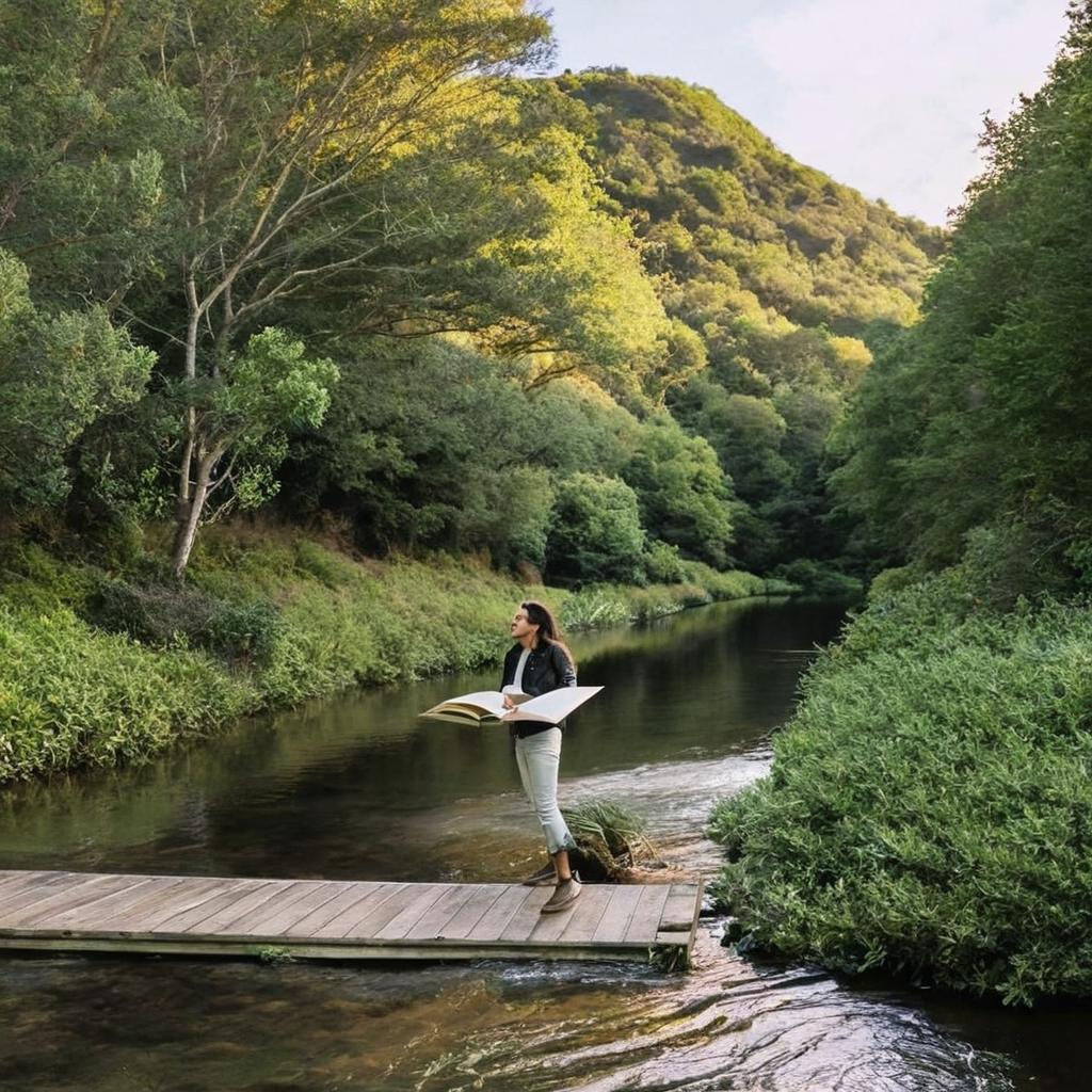 Embrace Serenity: Woman in Trench Coat by Jungle River