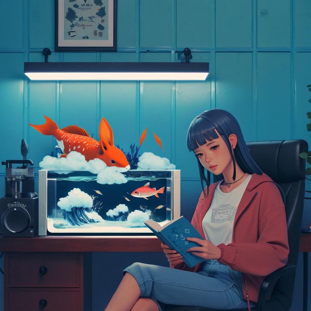 Whimsical Anime Girl in a Cozy Night Room