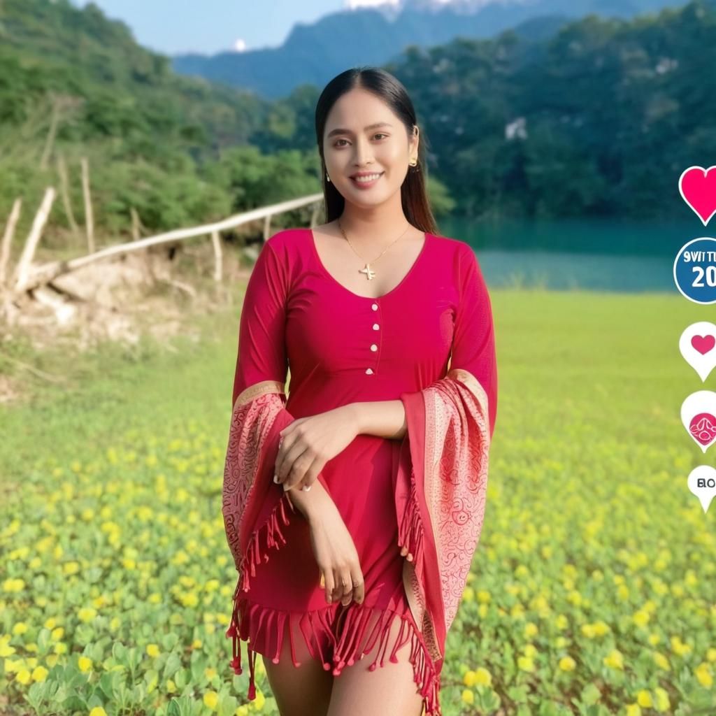 Elegance in Red: A Beautiful Woman in a Sari