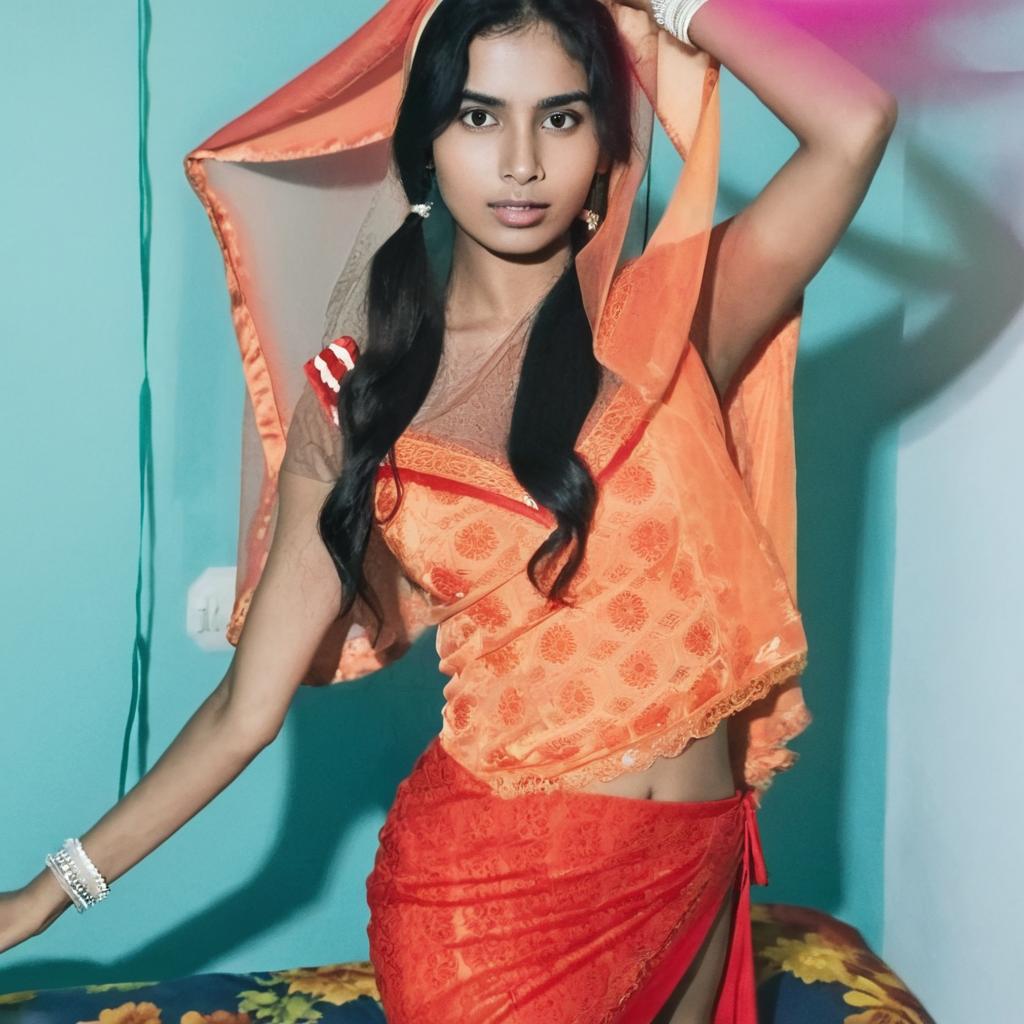 Radiant Elegance: A Bold Red Bra and Sari Fusion