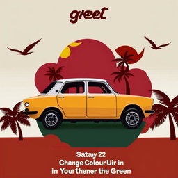 Cruise into Paradise: Modern Car & Palm Trees
