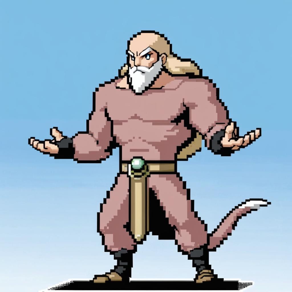 "Genera un sprite de un entrenador Pokemon, para pokemon essentials, con gráficos de 4a generación, que esté basado en el dios nórdico Niord. Con esta referencia de imagen y con el estilo de los sprites en pixel"