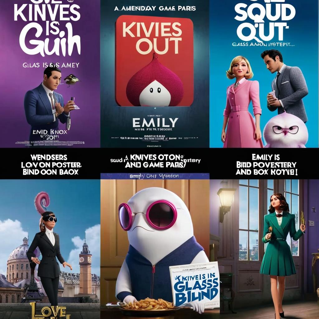 "A 2d version of the Wednesday, Emily in Paris, Squid Game, Glass Onion: A Knives Out Mystery, Love is Blind, and Birdbox posters."