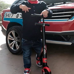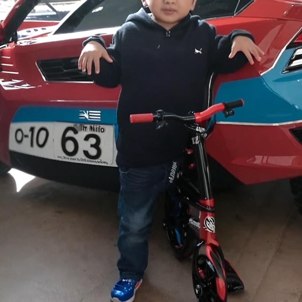 Joyful Adventures: Young Boy with Motorcycle and Scooter